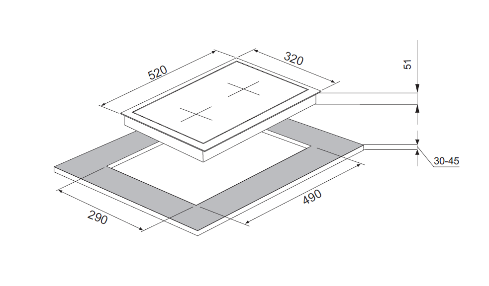 • Recess size for embedding (WхD) 290х490