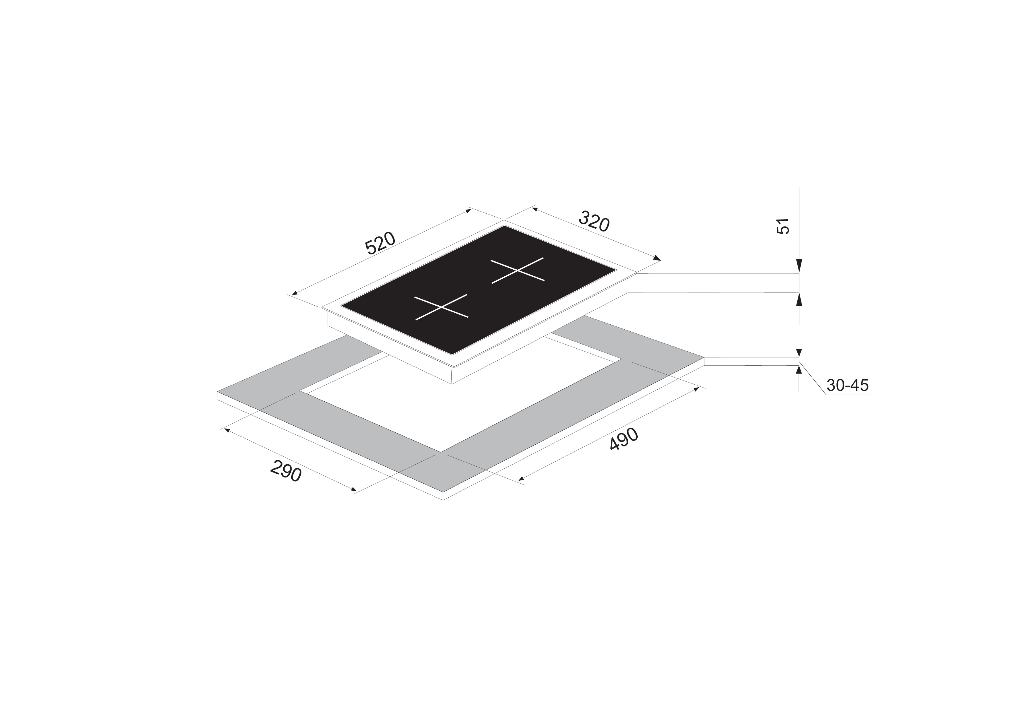 - Recess size for embedding (WхD) 290х490