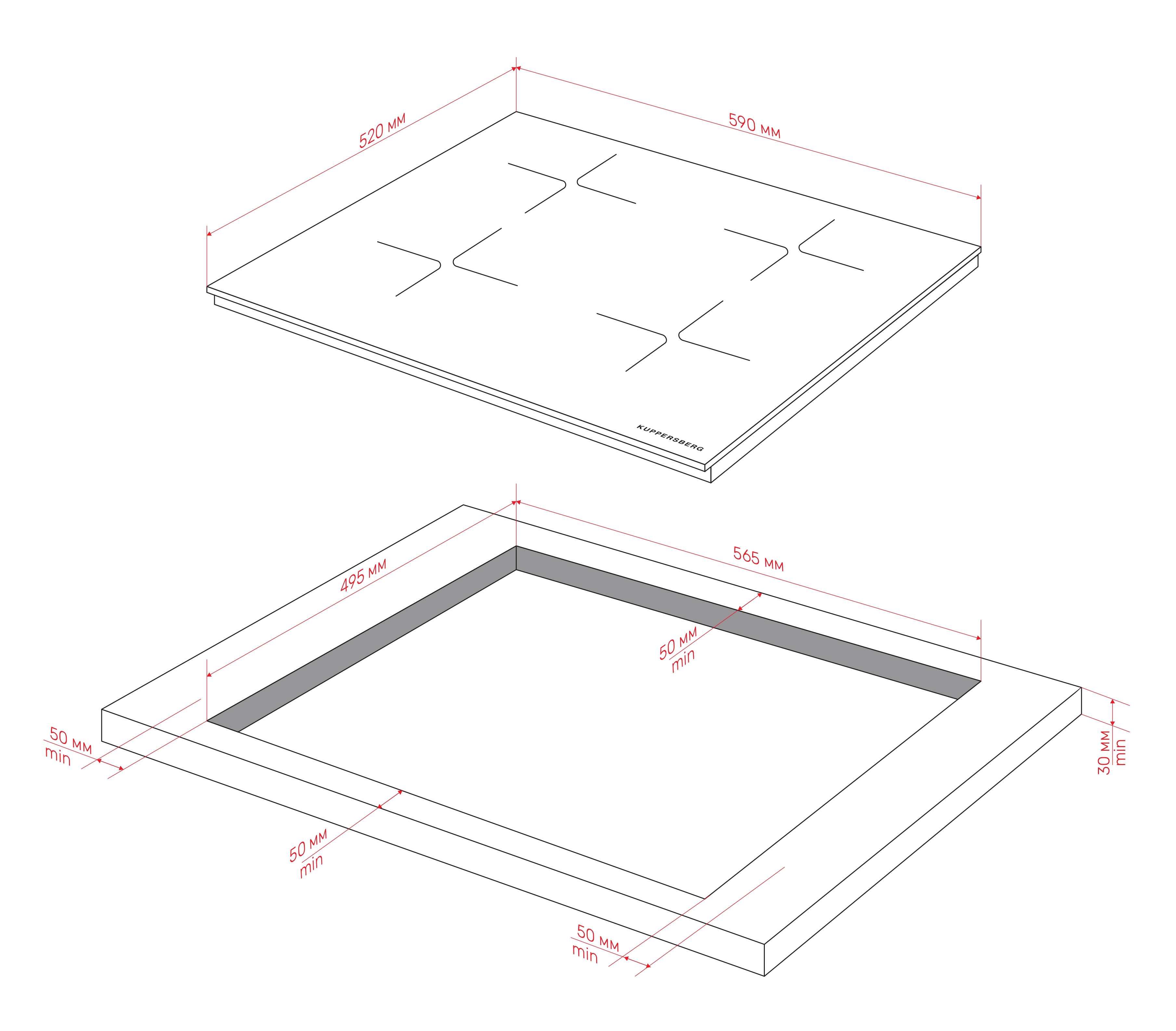 • Recess size for embedding (WxD), mm 565x495