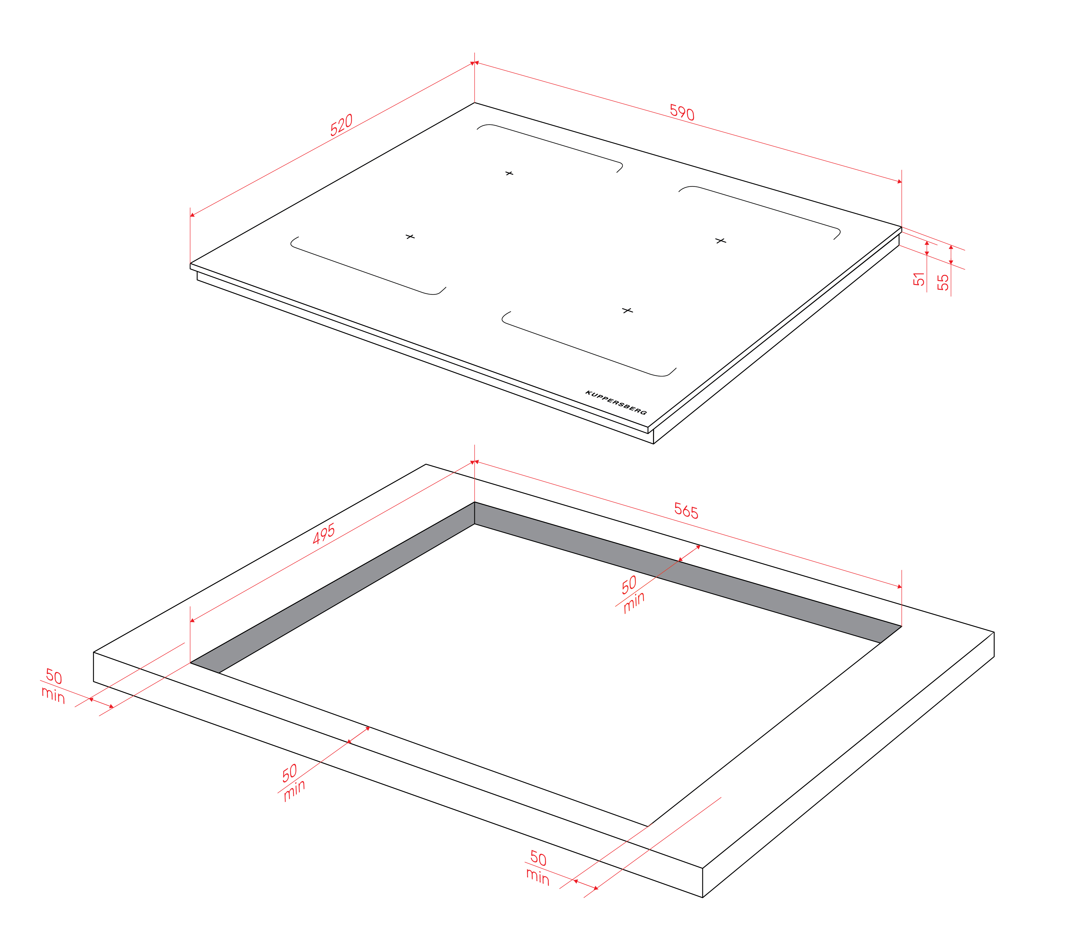 • Burner power, kW: rear left 2,0 кВт / 2.8 кВт