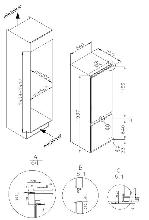 • Recess size for embedding (WxHxD), mm 560х1939х550