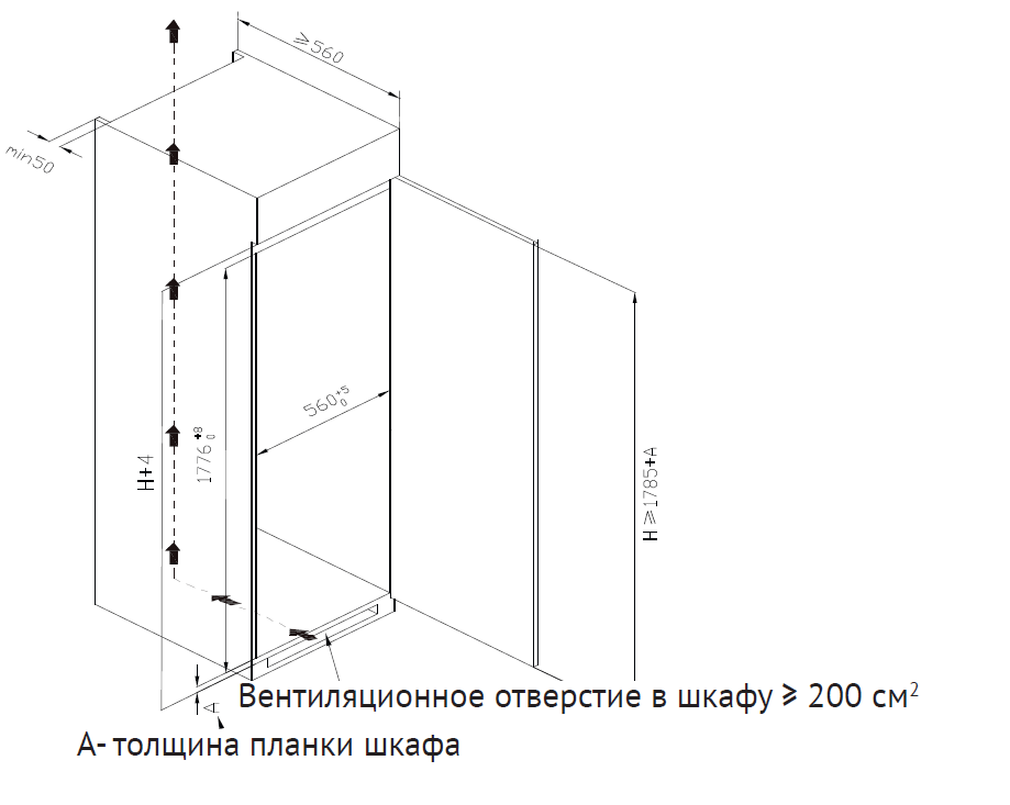 - Recess size for embedding (WxHxD), mm 560(+5)x1776(+8)x560